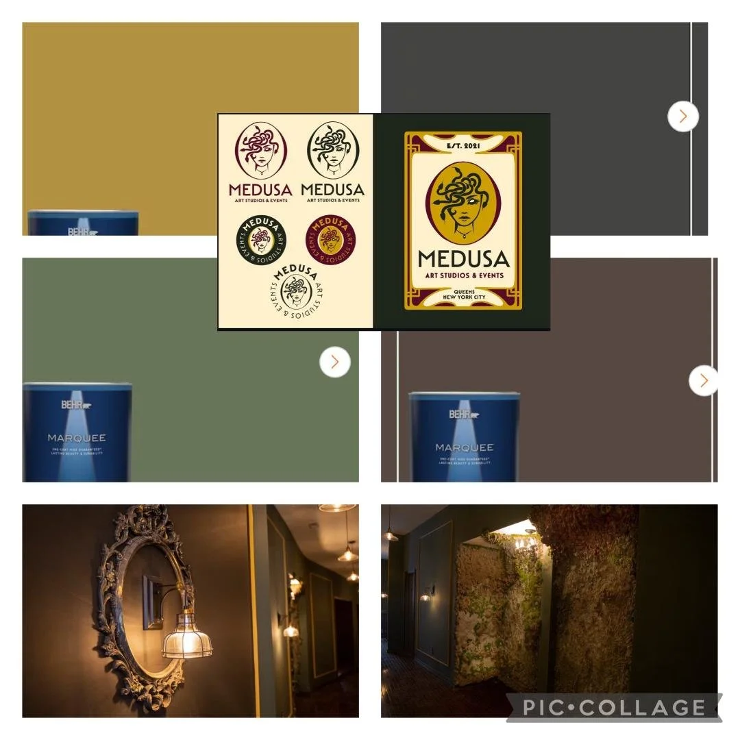 Often accent in gold to bounce off of Katie's gold accents at Medusa and her branding.